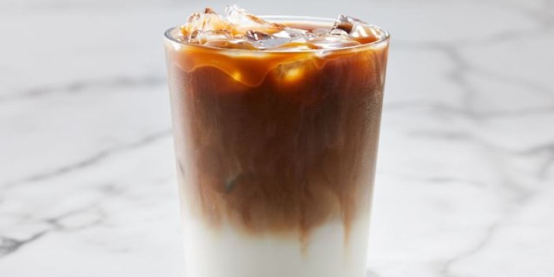 For an authentic layered look, froth the milk lightly. The Breville Milk Café ($130) or a basic handheld frother ($10–$15) can both work. It’s not essential for iced drinks, but it adds texture.